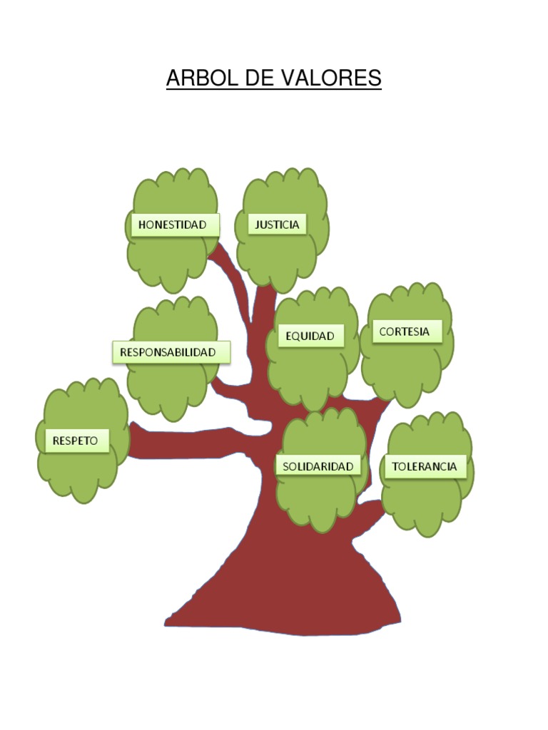 periódico un árbol, con espacios para escribir los valores o con hojas en las cuales se